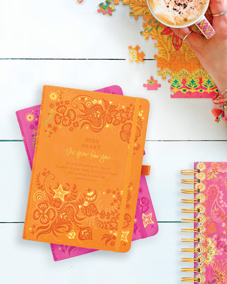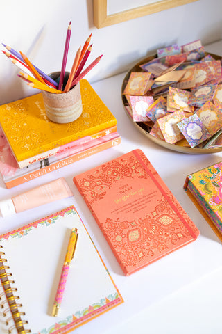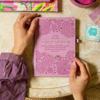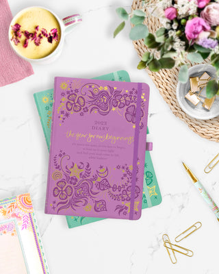 Your diary begins with a powerful guided journaling session to reflect on the last year + uncover what you learnt about yourself. Then it's time to look forward to awaken your dreams for the next year, identify areas you want to focus on, create a vision, and set goals, actions + habits to nurture.