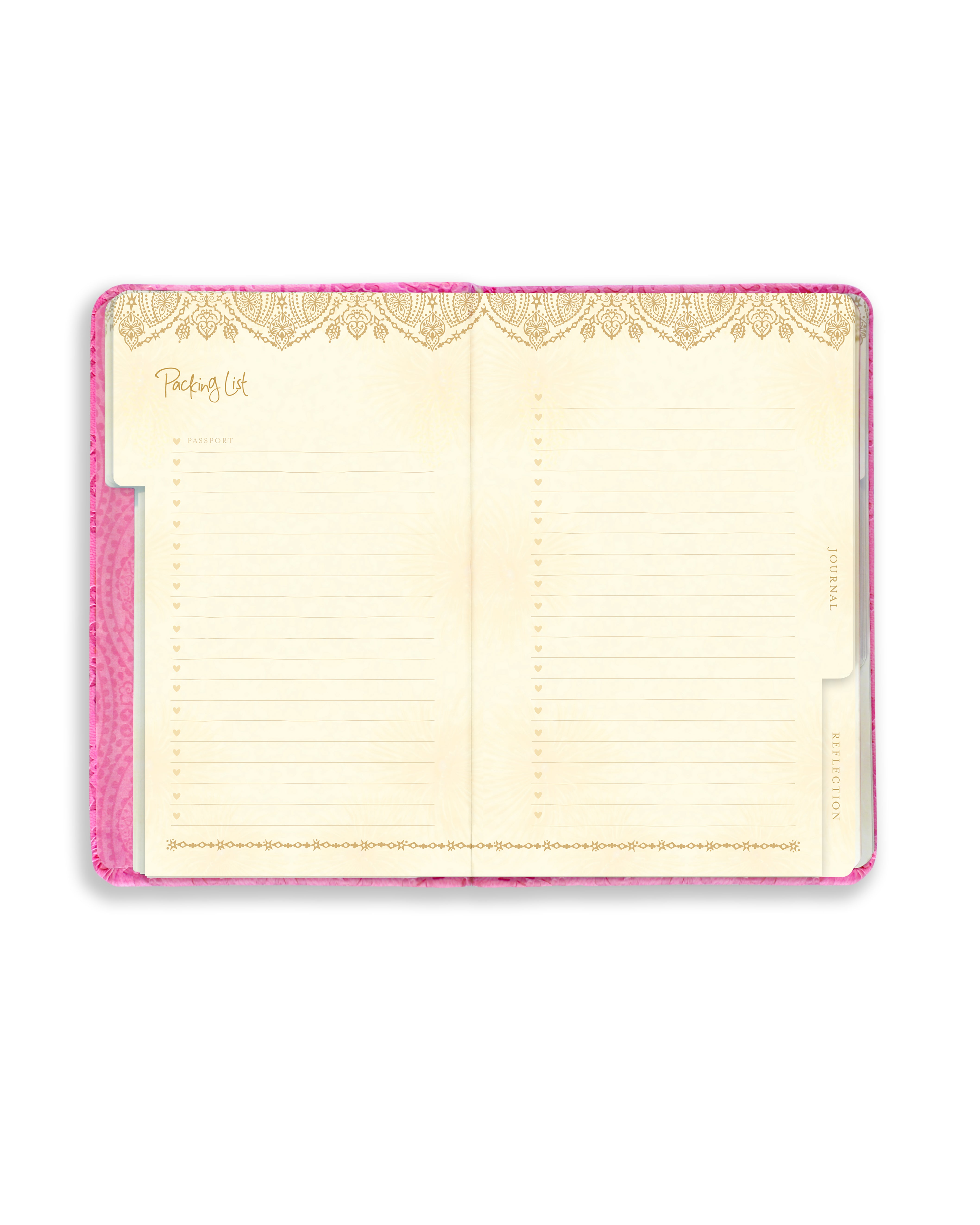 Travellers will be inspired to write and capture their memories in the beautifully embossed, boho-style pink journal graced with an Adèle Basheer quote.