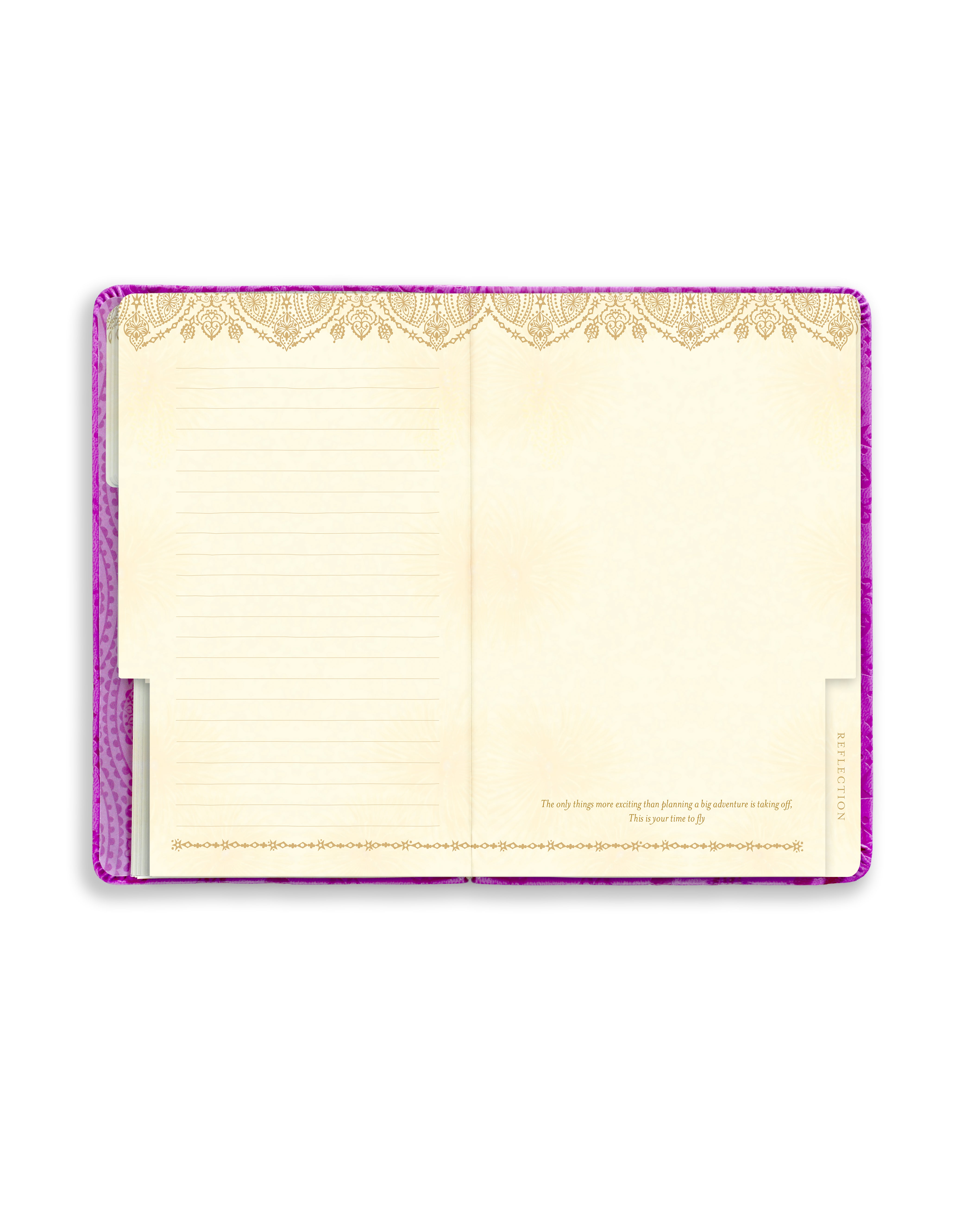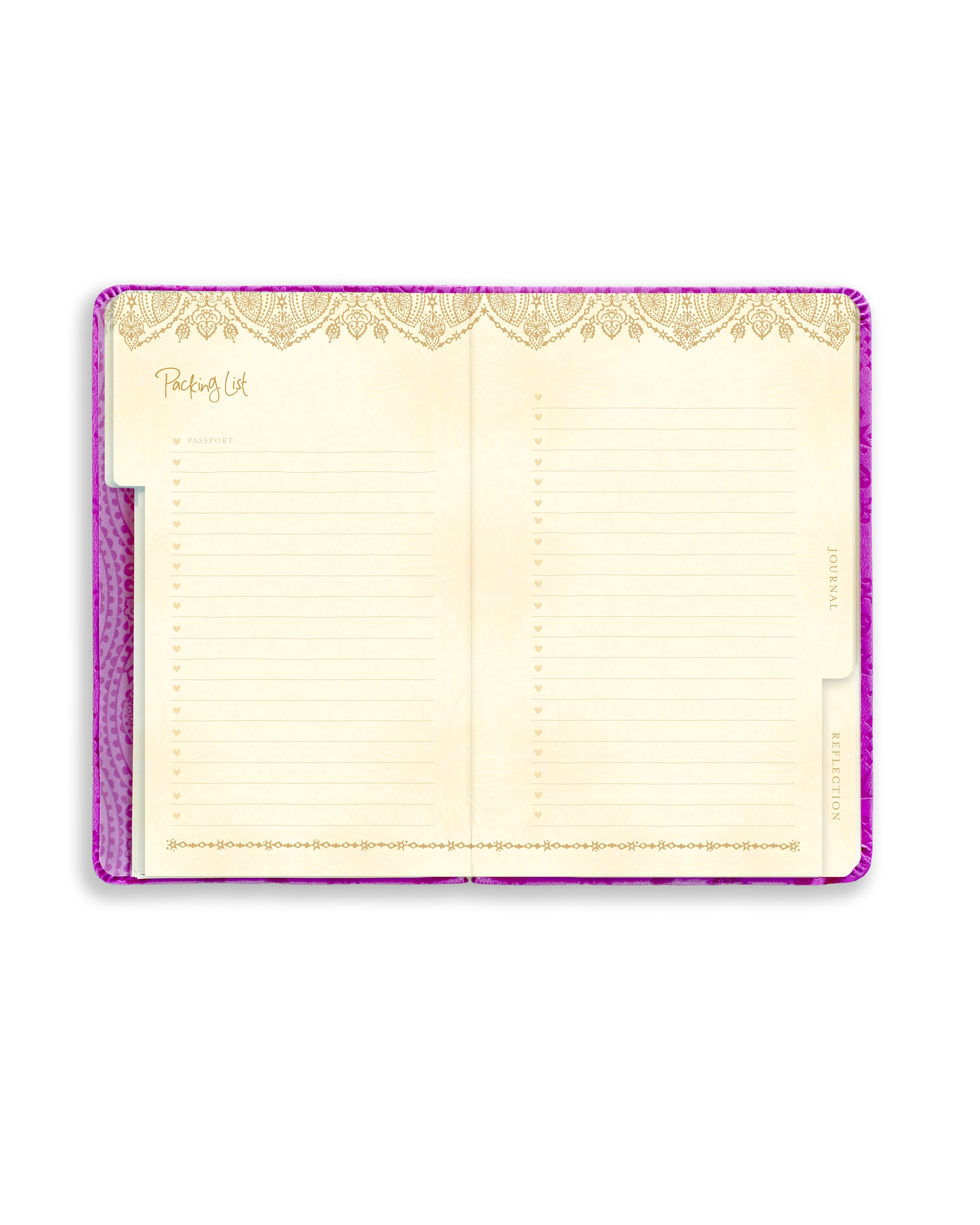Travellers will be inspired to write and capture their memories in the beautifully embossed, boho-style, pink purple travel journal graced with an Adèle Basheer quote.
