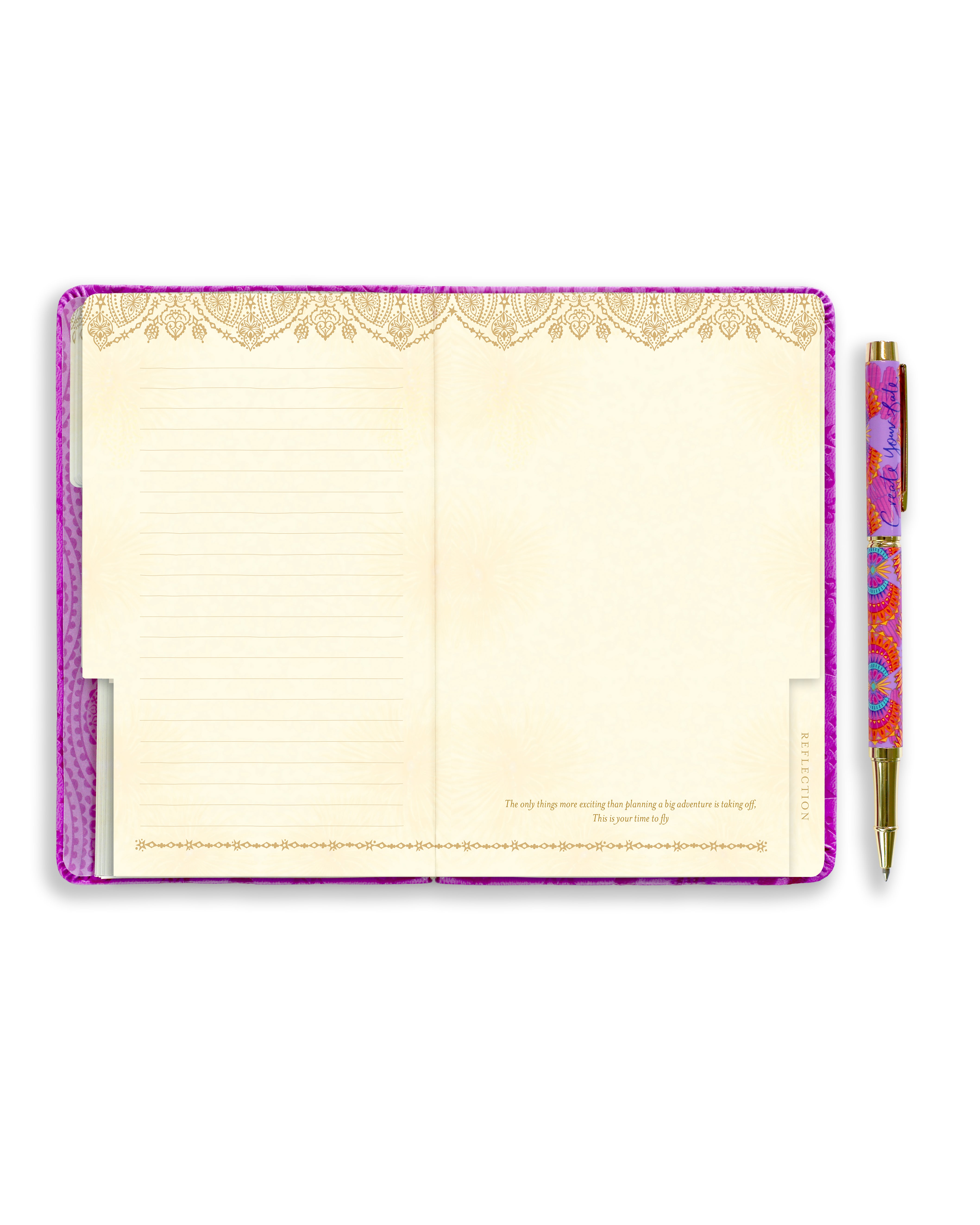 Travellers will be inspired to write and capture their memories in the beautifully embossed, boho-style, pink purple travel journal graced with an Adèle Basheer quote.