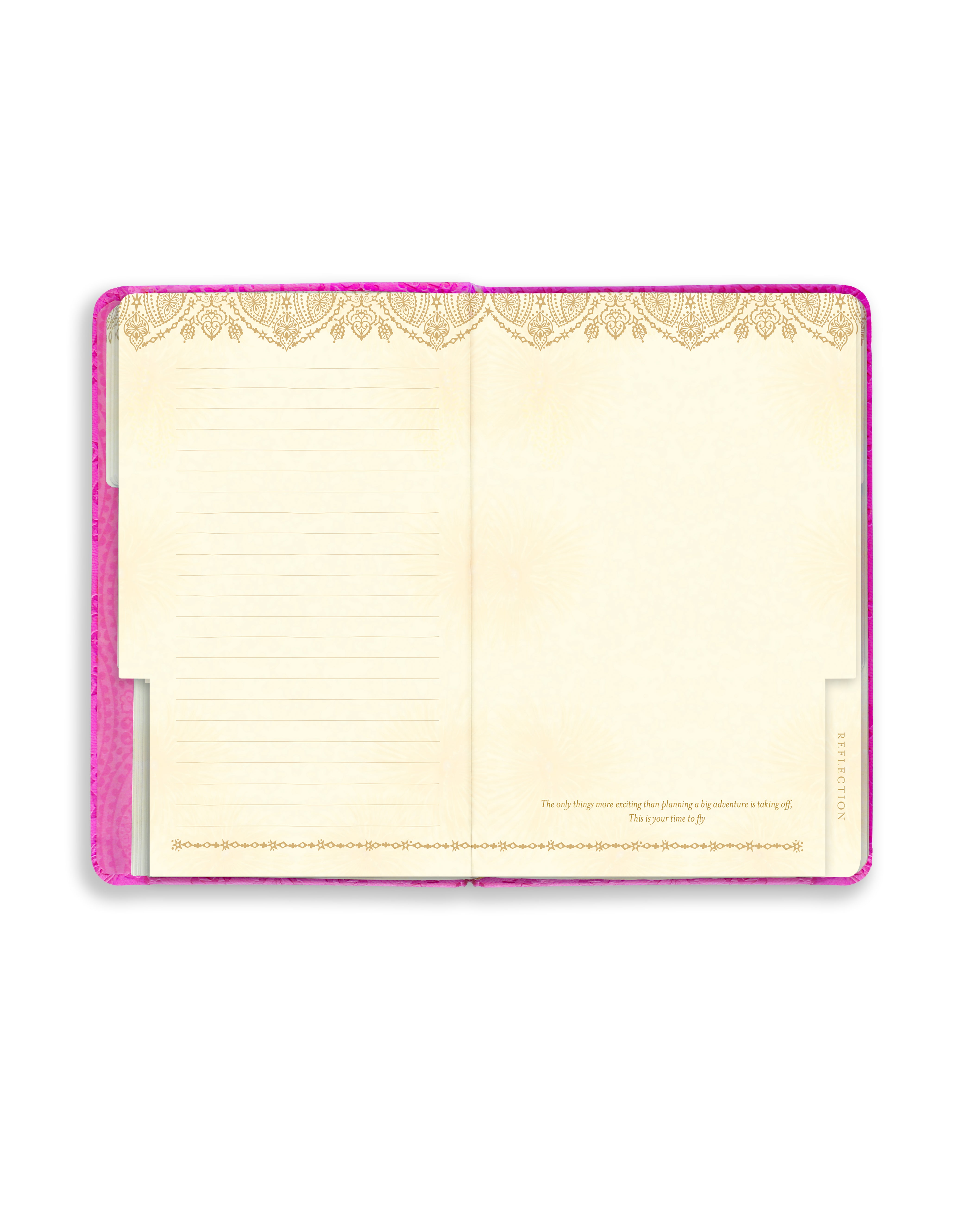 Travellers will be inspired to write and capture their memories in the beautifully embossed, boho-style, pink journal graced with an Adèle Basheer quote.