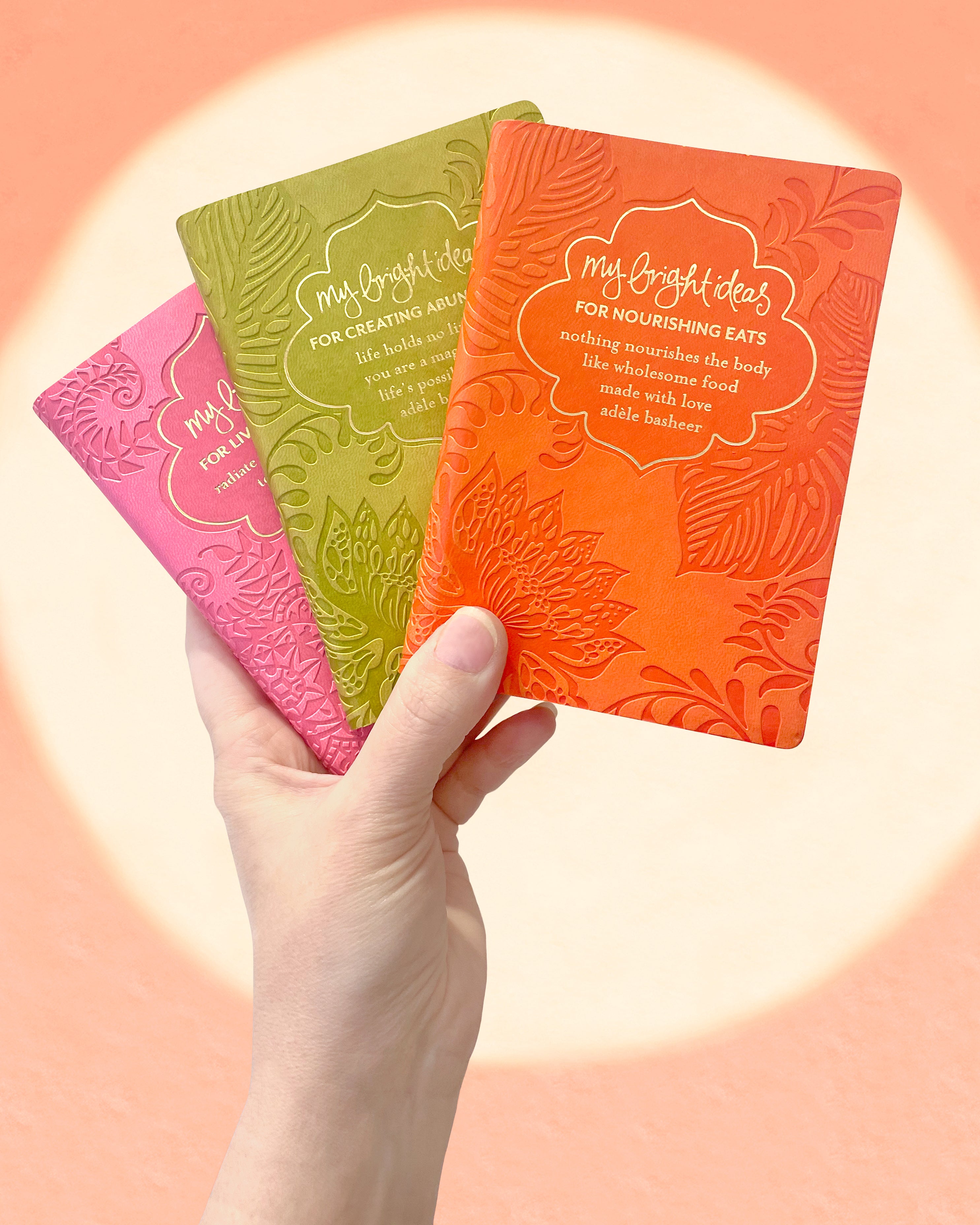 My Bright Ideas For Nourishing Eats in Persimmon Orange is the perfect mini journal to create healthy eating goals, capture inspiring recipes, develop meal plans, and celebrate your healing and nourishing journey.