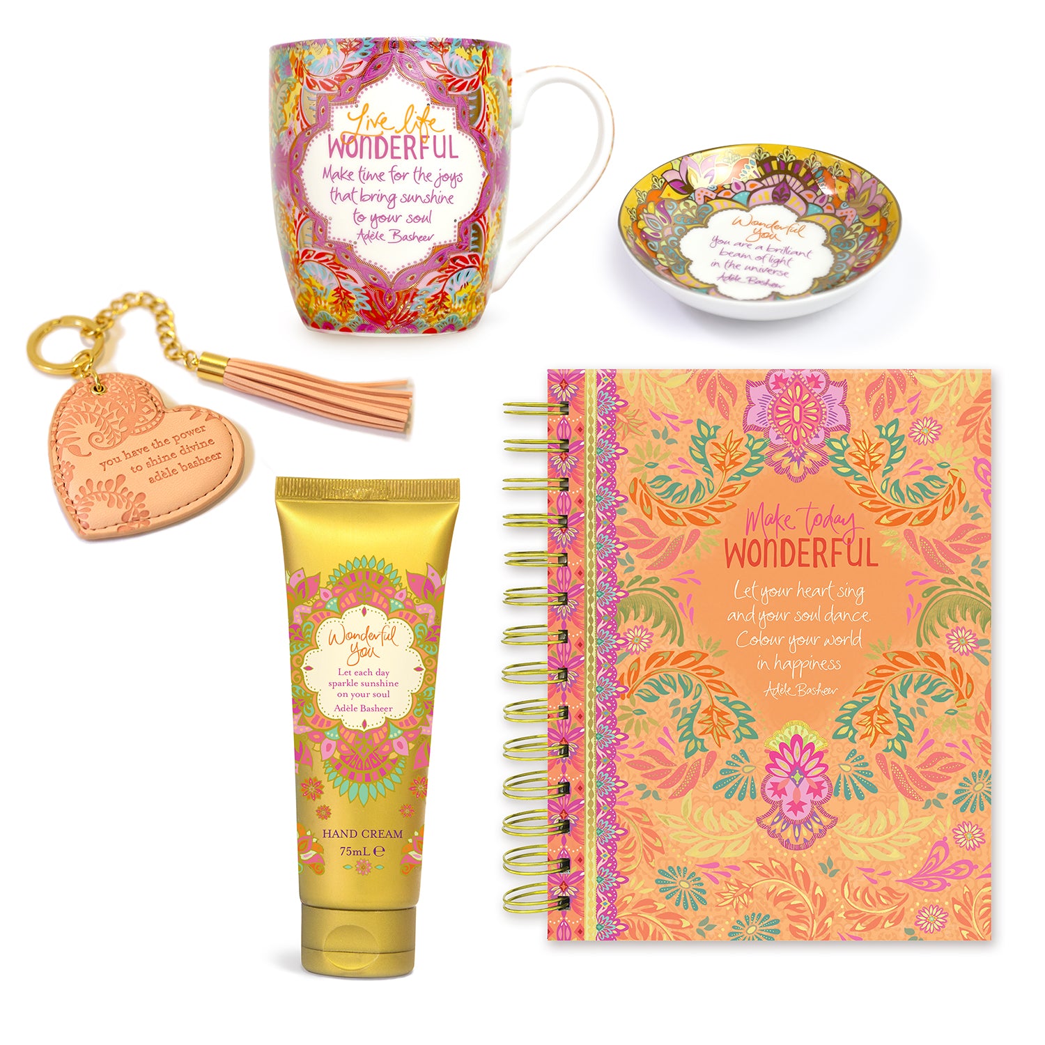 A beautiful present for Mother's Day, birthdays or just because, Intrinsic's 'Wonderful You' Gift Bundle is a joyous selection of stationery and self-care treats, all adorned with gold foil, pops of oranges, pinks and purples, and motivational messages from Adèle Basheer.