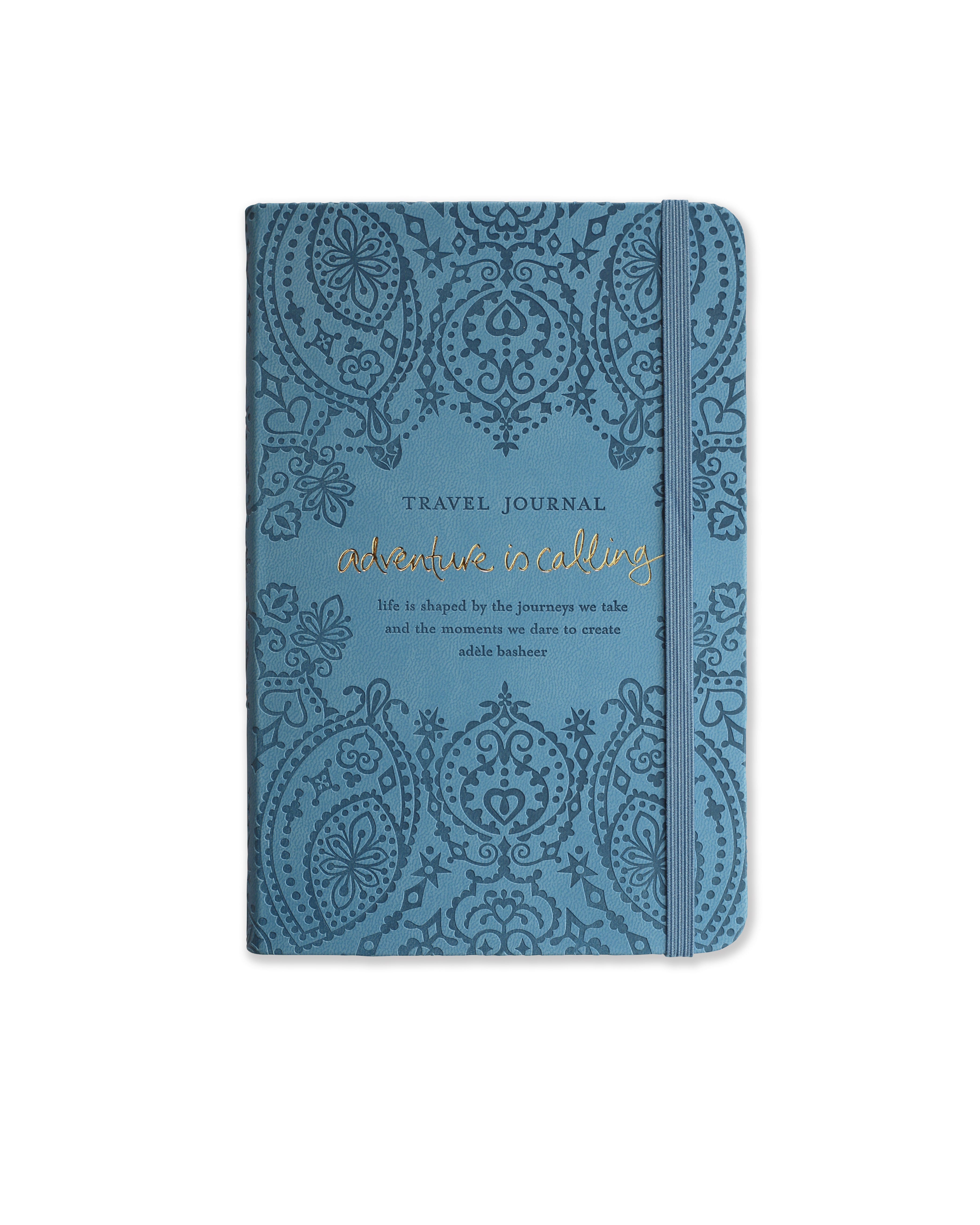 Travellers will be inspired to write and capture their memories in the beautifully embossed, boho-style blue journal graced with an Adèle Basheer quote.