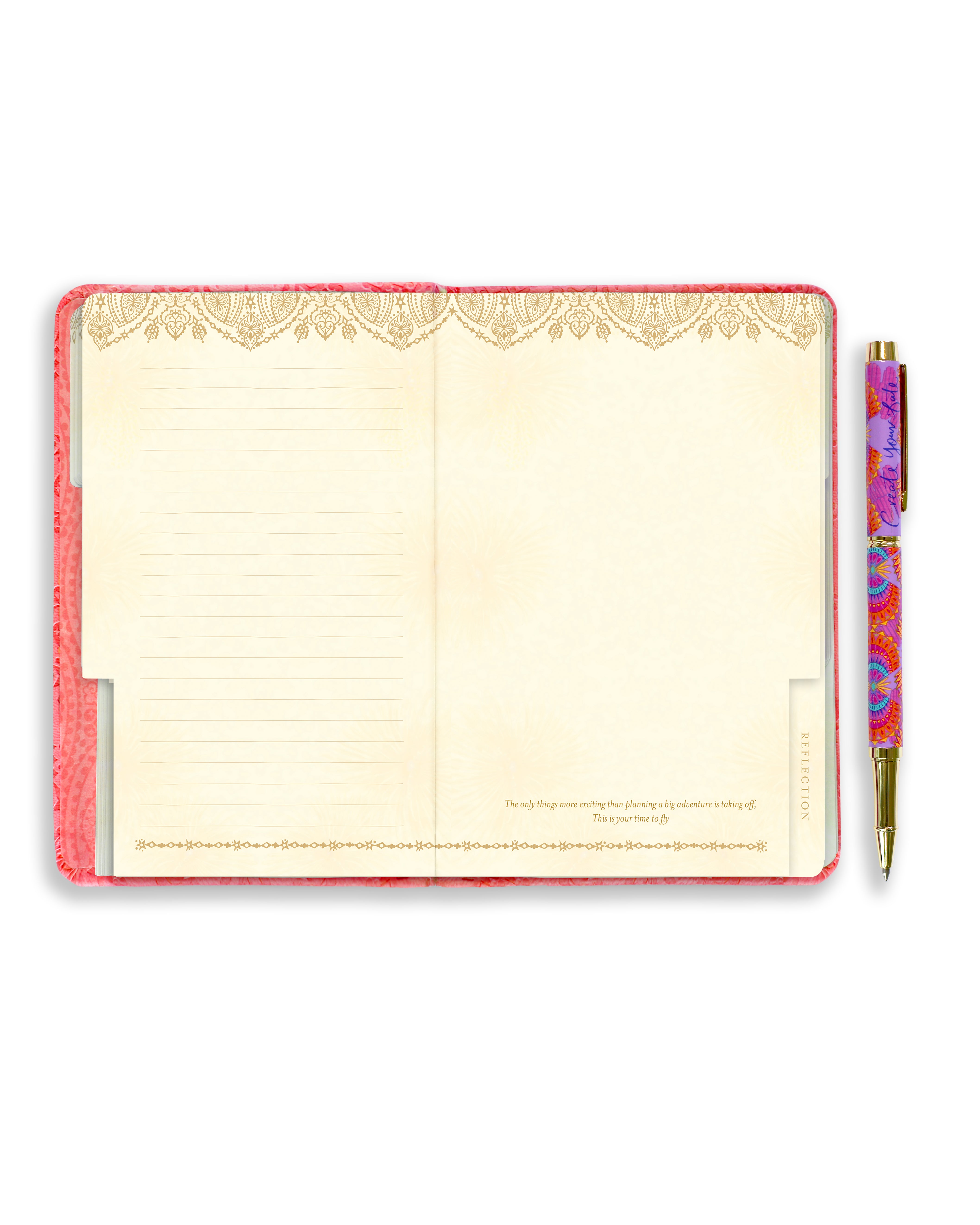 Travellers will be inspired to write and capture their memories in the beautifully embossed, boho-style, peachy orange journal graced with an Adèle Basheer quote.