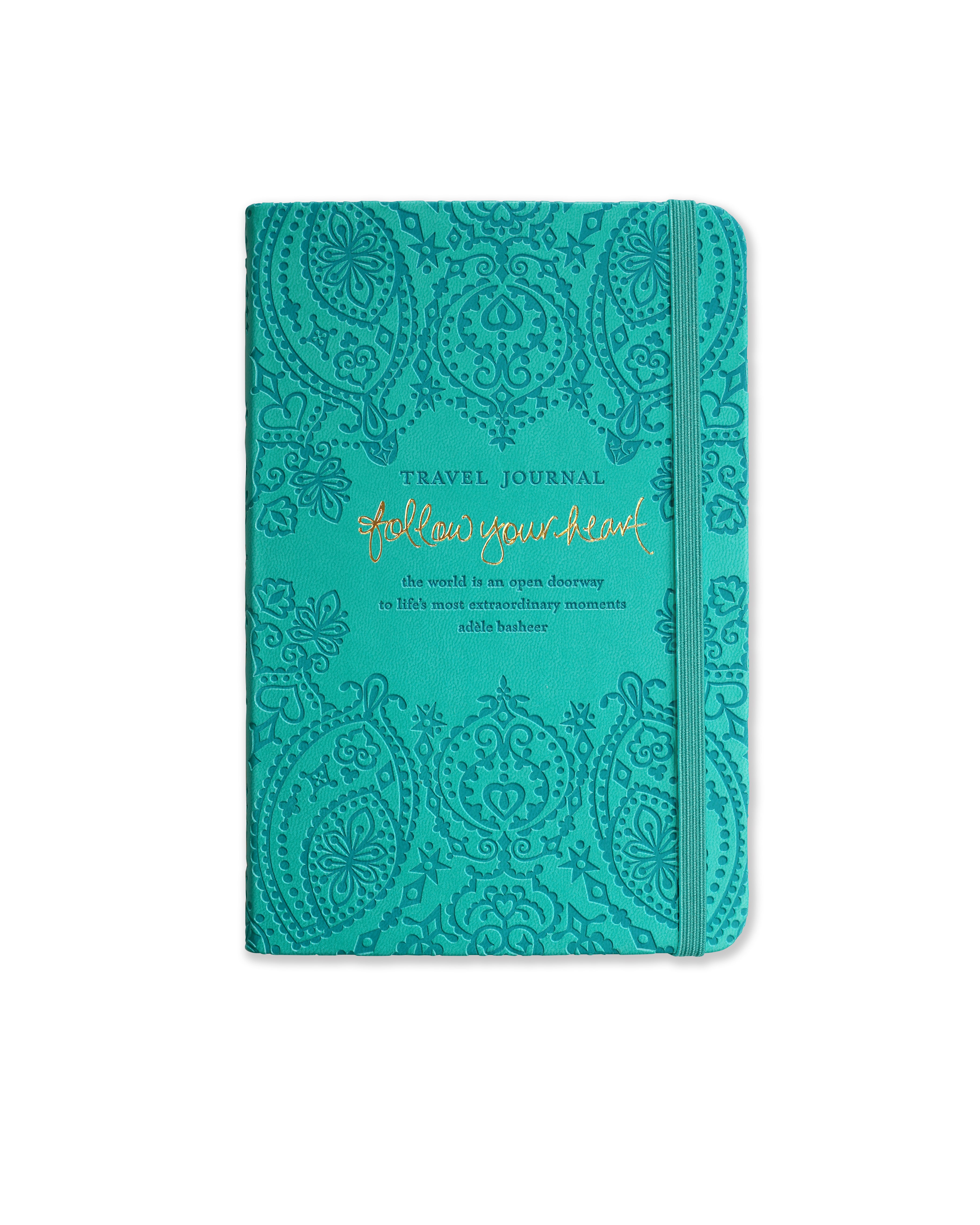 Travellers will be inspired to write and capture their memories in the beautifully embossed, boho-style aqua journal graced with an Adèle Basheer quote.